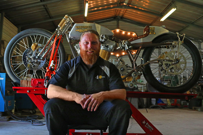 Matt Harris, owner of 40 Cal Customs bike shop, is full speed ahead while also honoring the history of the craft. Harris shares his genuine love for building bikes and why he chooses to use tools from the 1930s.